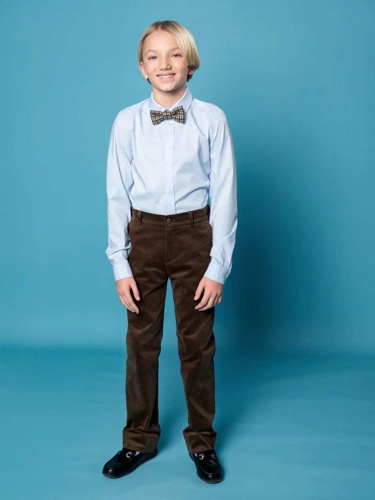 Классические брюки из вельвета - нарядный и элегантный вариант для юного джентльмена.