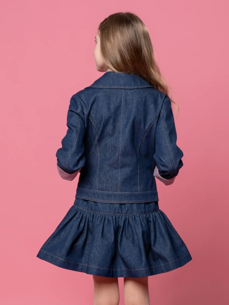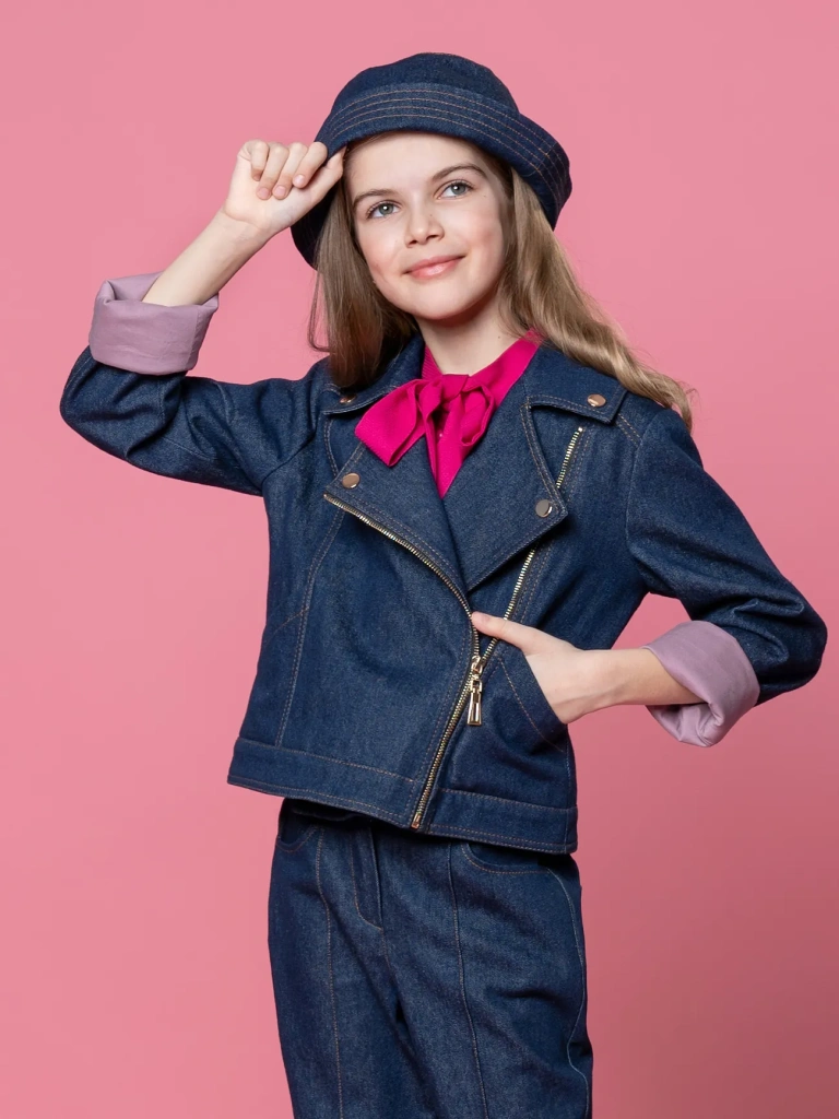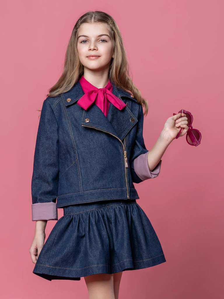 Джинсовая куртка-косуха - идеальное сочетание дерзкого стиля и комфорта для активных девочек. Классический крой косухи с ассиметричной молнией придает стильный и модный образ.