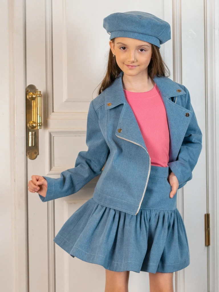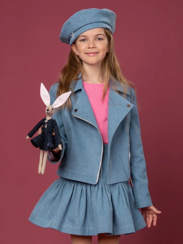 Джинсовая куртка-косуха - идеальное сочетание дерзкого стиля и комфорта для активных девочек. Классический крой косухи с ассиметричной молнией придает стильный и модный образ.