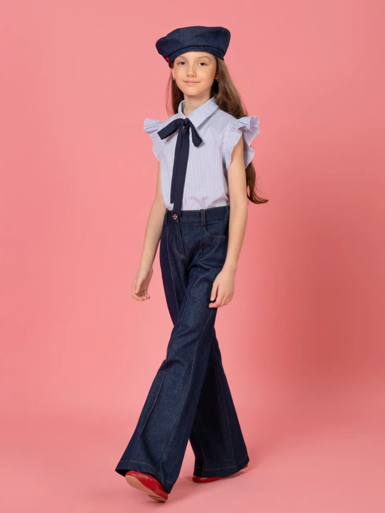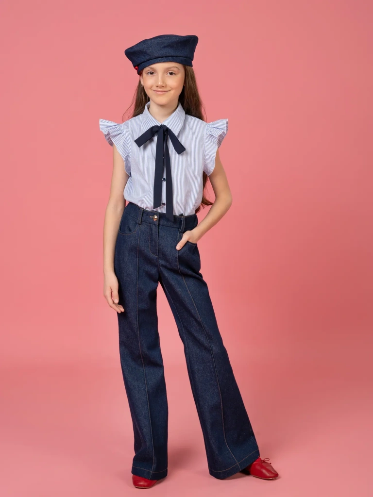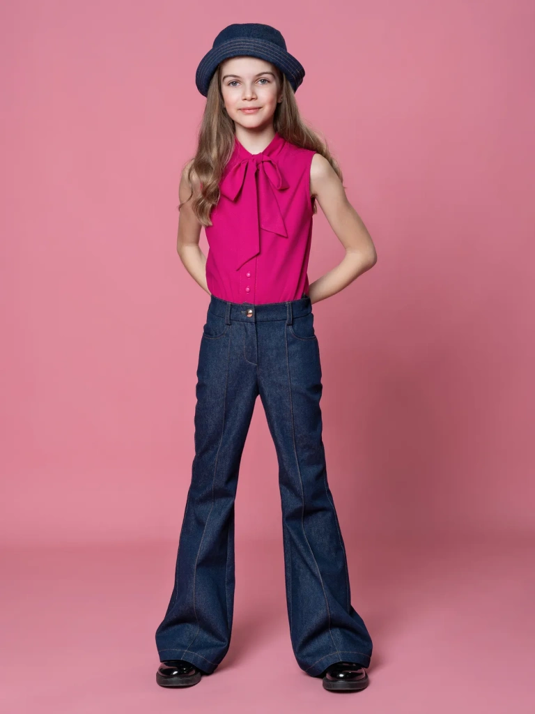 Джинсы клеш – идеальный выбор для стильных будней. Благодаря высокой посадке и внутренней резинке в поясе модель отлично садится на фигуру. Клеш добавит разнообразия в гардероб и подчеркнет фигуру, а стрелки придадут элегантности. Брюки удобны и не стесняют движений, что очень важно при длительном ношении.