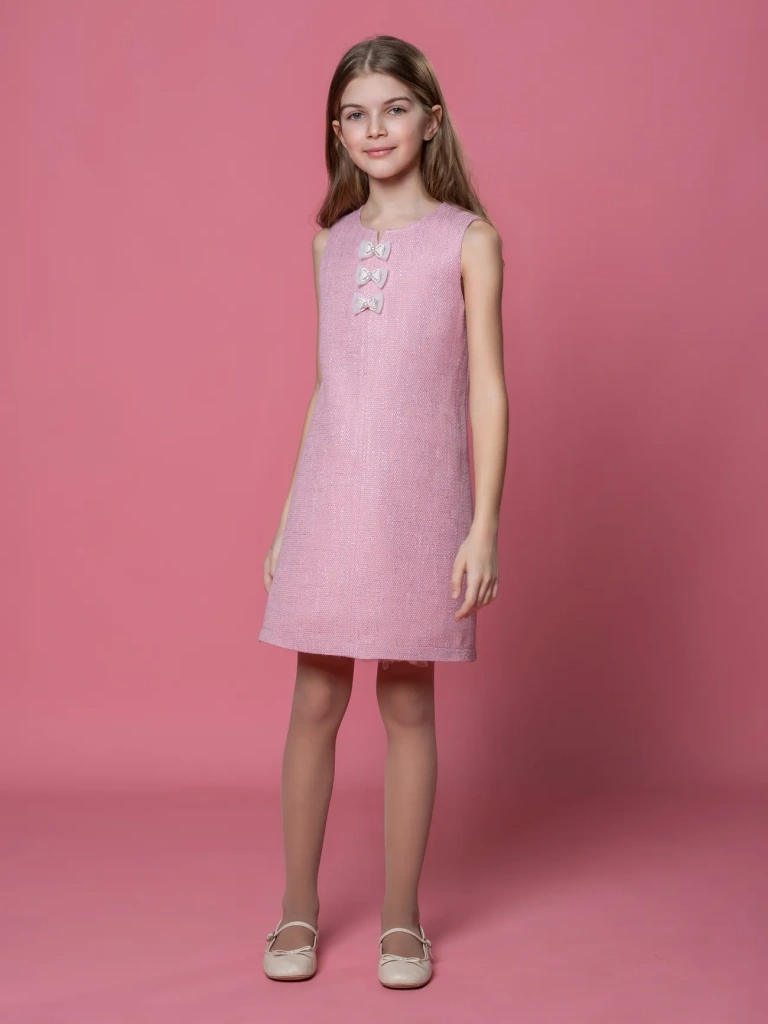 Стильное платье-трапеция из твида - идеальный выбор для юных леди, которые ценят комфорт и элегантность. Классический фасон в сочетании с фактурной тканью создает утонченный образ, который подойдет как для праздников, так и для повседневных выходов.