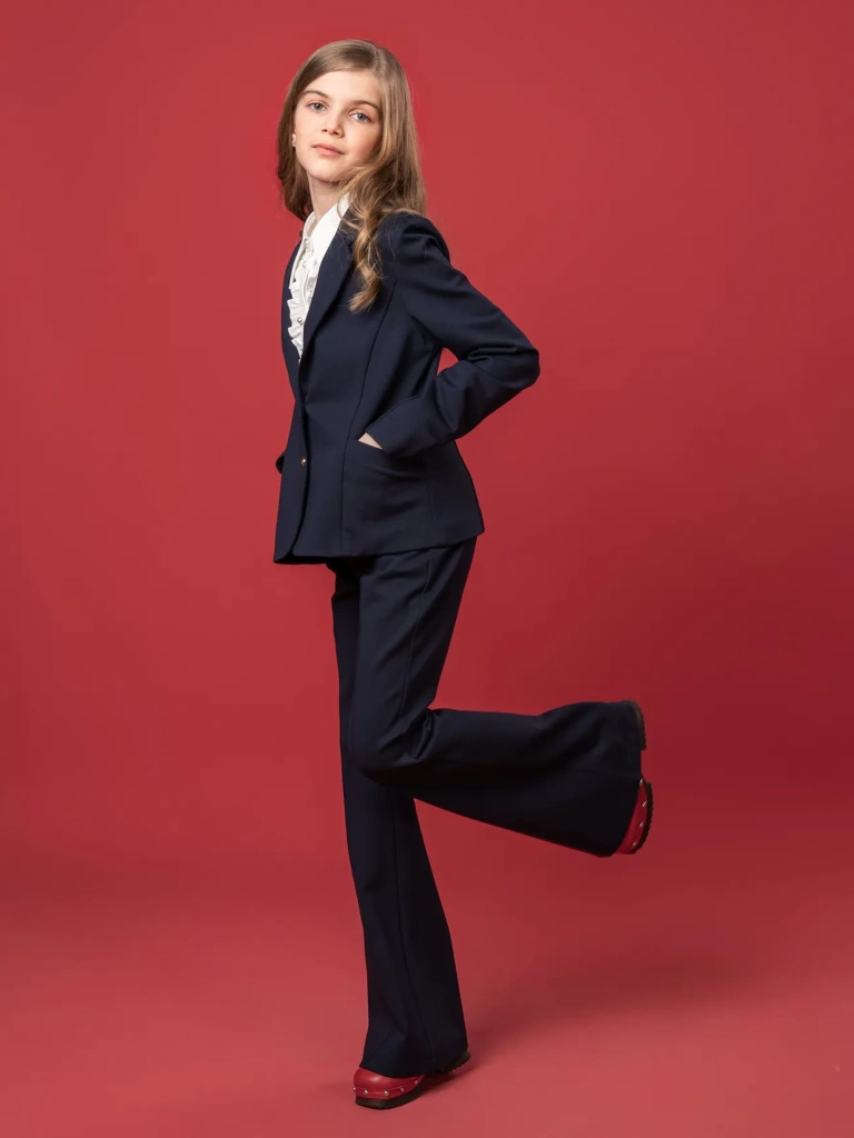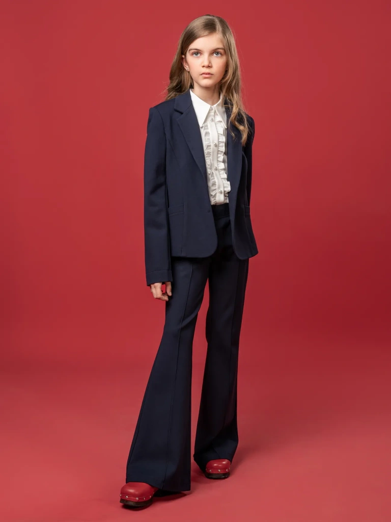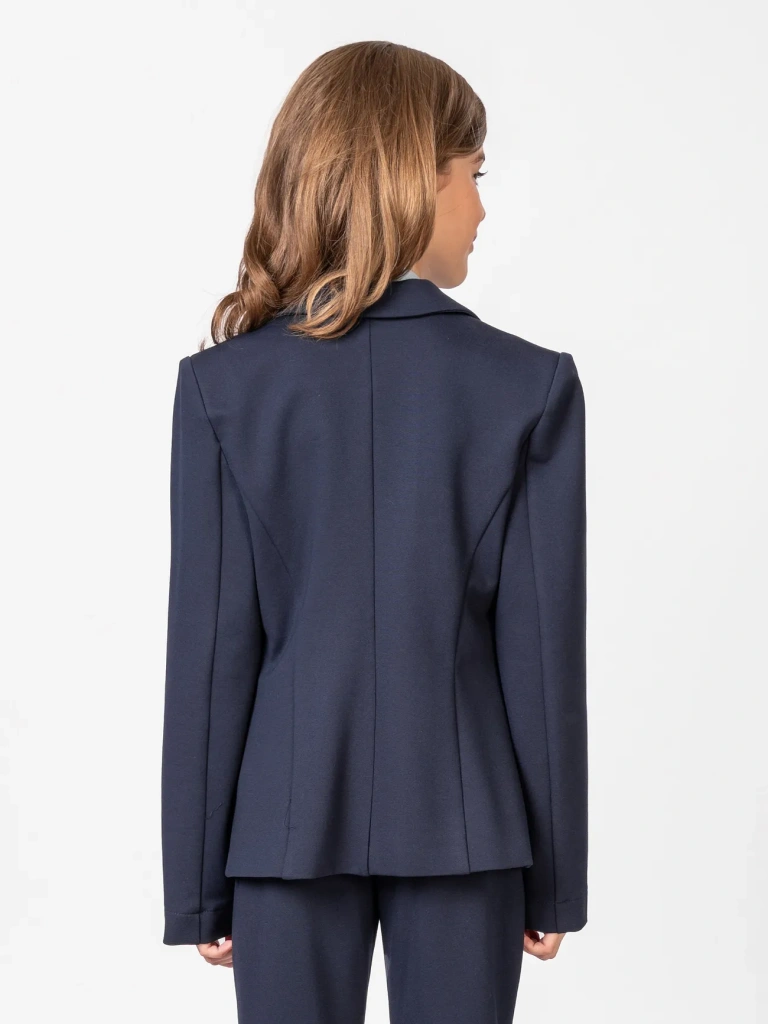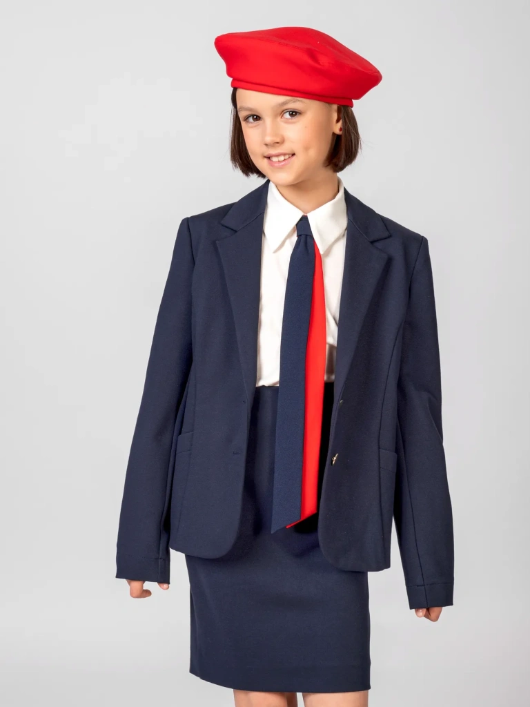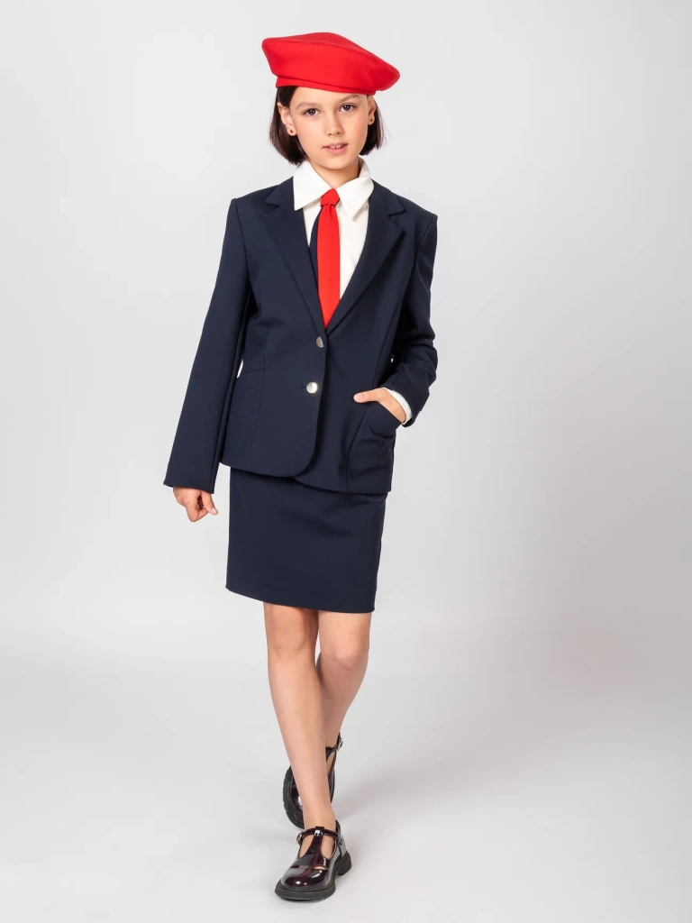 Практичный жакет из трикотажа джерси - удачное решение для школьного гардероба. Благодаря плотному и при этом мягкому материалу он комфортно сидит, не стесняет движений и сохраняет аккуратный вид даже при активной носке. Лаконичный крой с застежкой на пуговицы и классическим воротником делает модель универсальной: жакет легко сочетается с любой школьной формой, придавая образу завершенность и строгость.