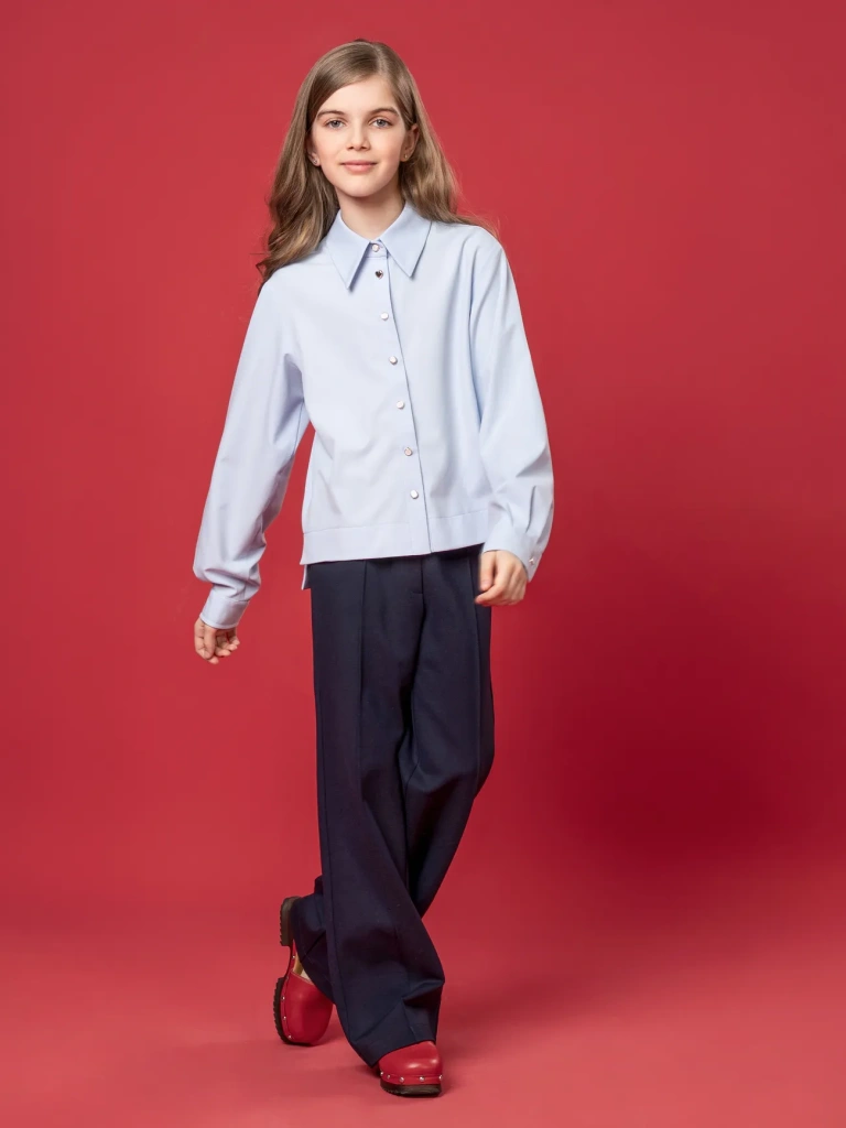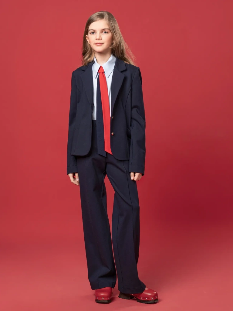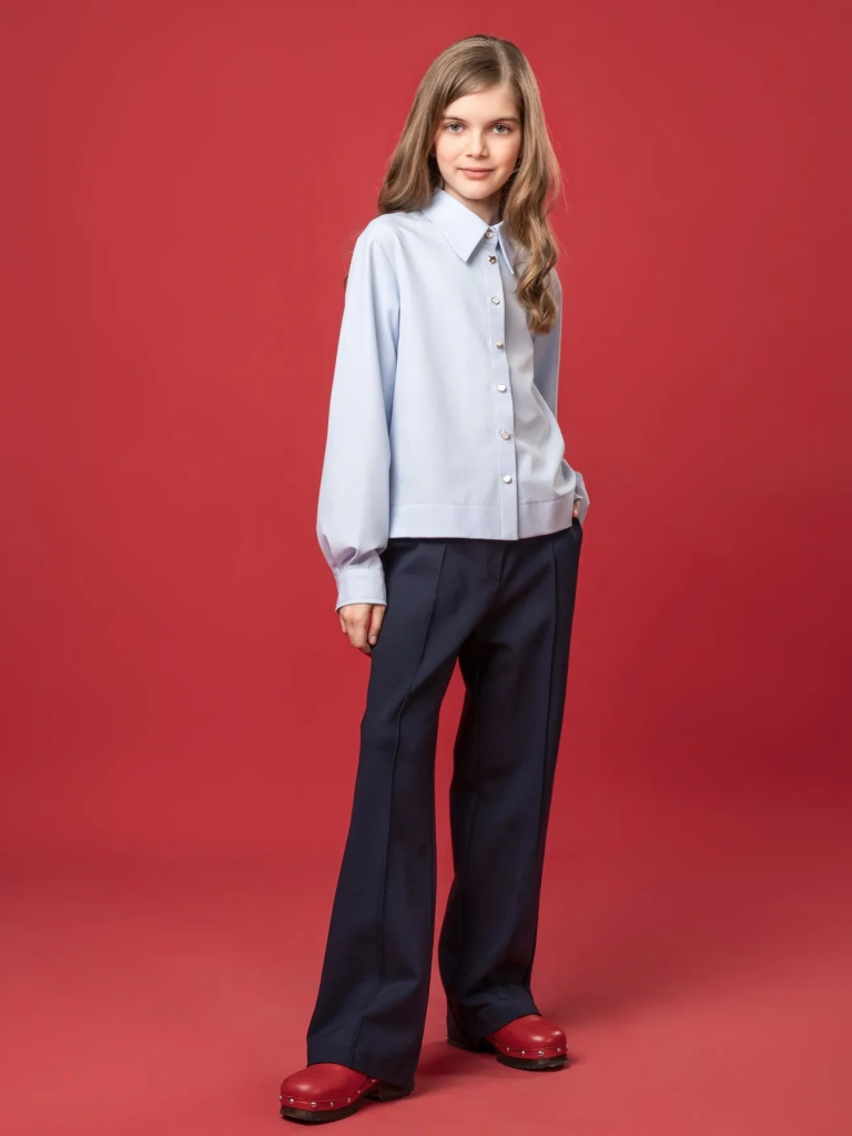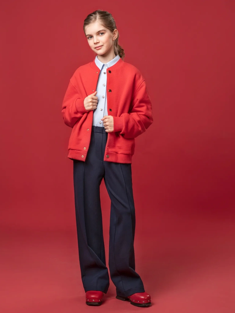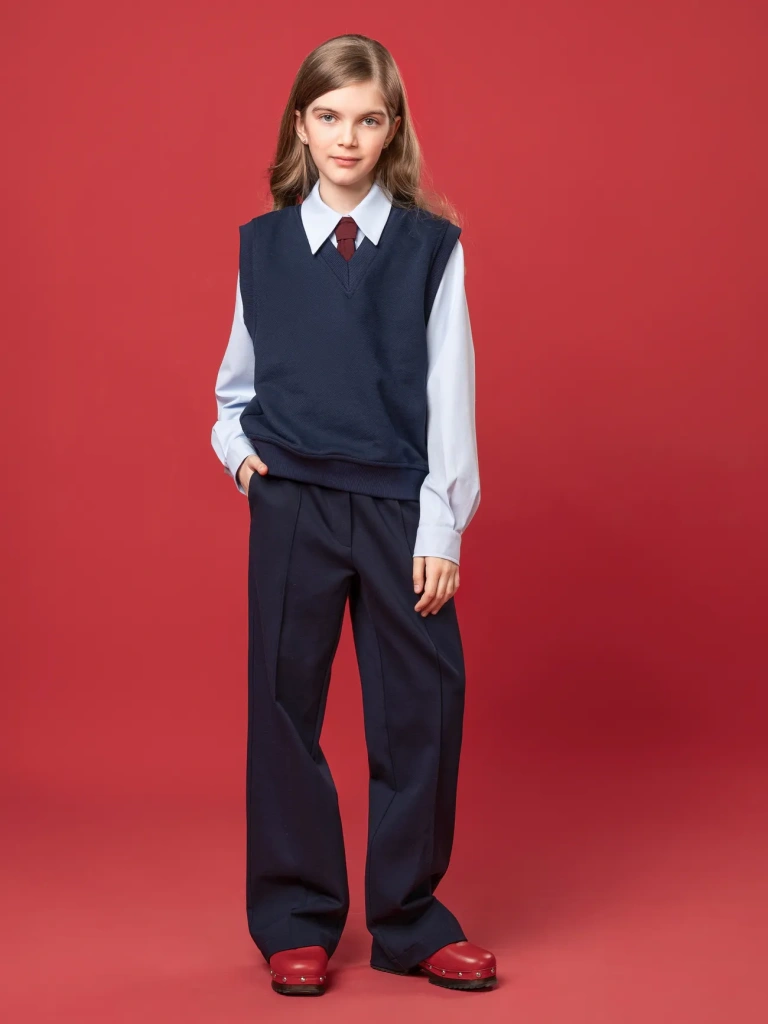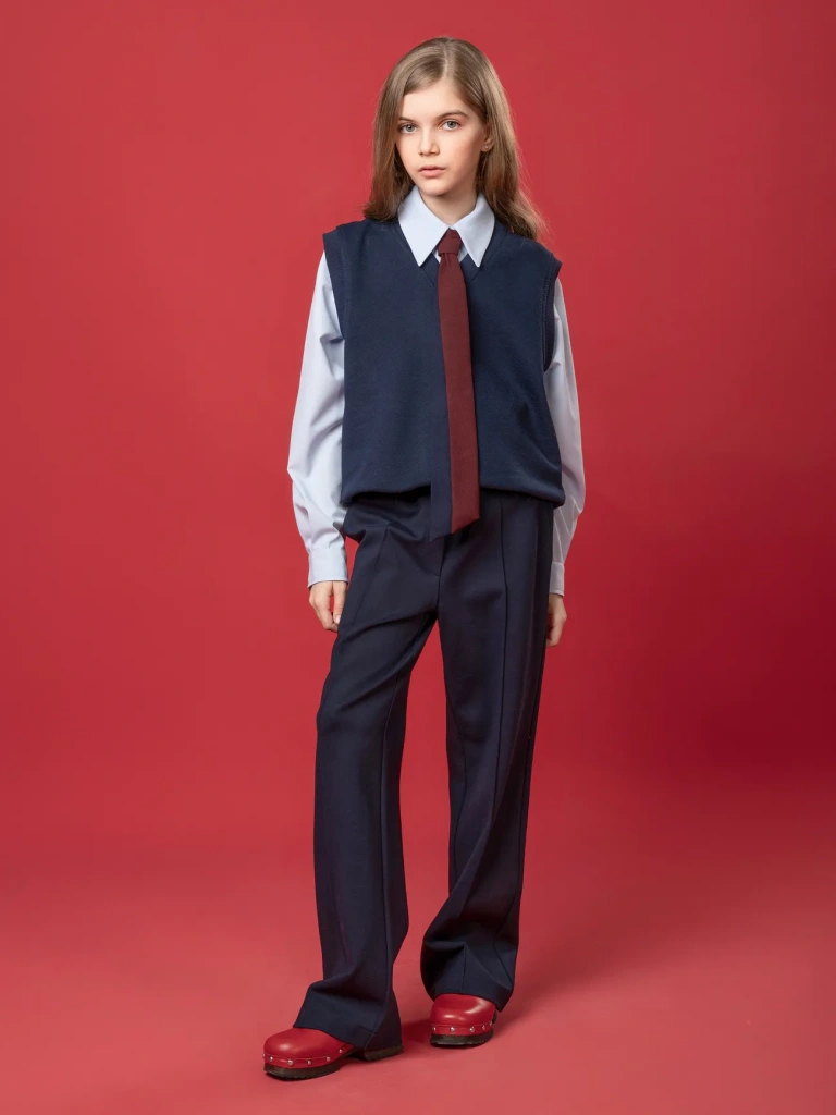 Классические прямые брюки из мягкого трикотажа джерси — универсальный элемент гардероба для школы и повседневной носки. Благодаря плотному, но эластичному материалу модель удобно сидит, не сковывает движения и сохраняет форму в течение дня. Стрелки визуально удлиняют ноги, а лаконичный крой делает брюки уместными как в строгом, так и в более расслабленном образе. Отлично сочетаются с рубашками, жилетами и жакетами.