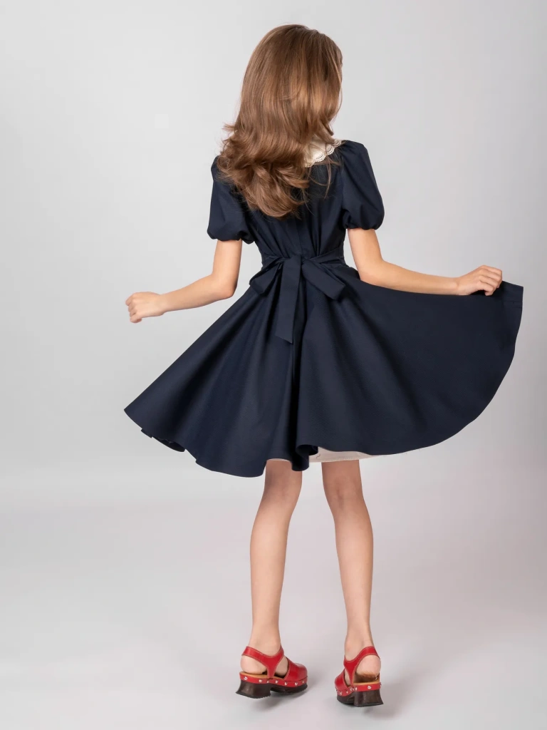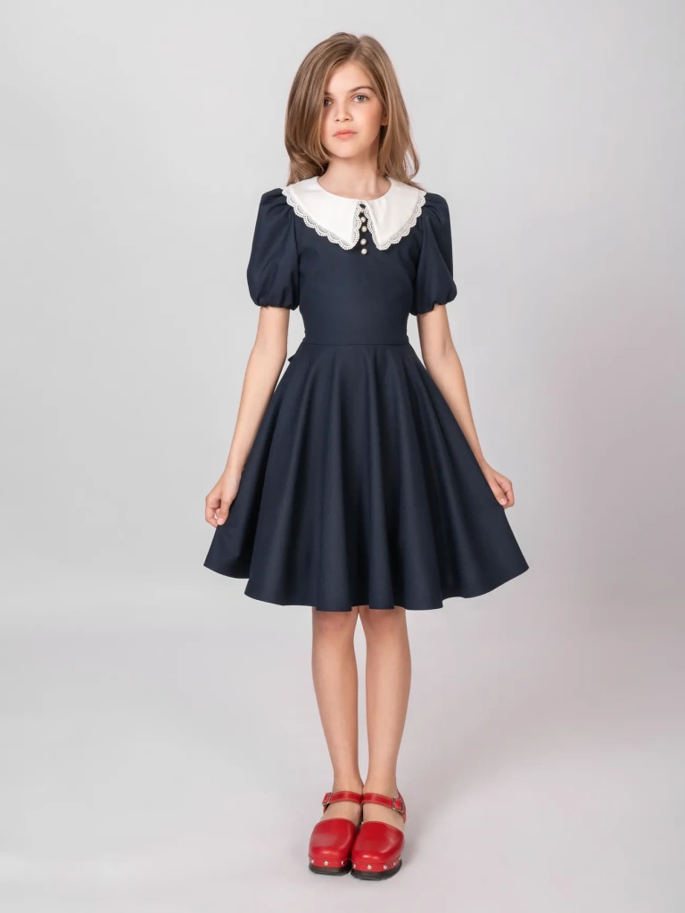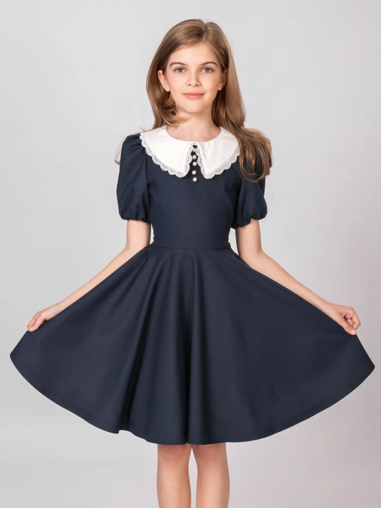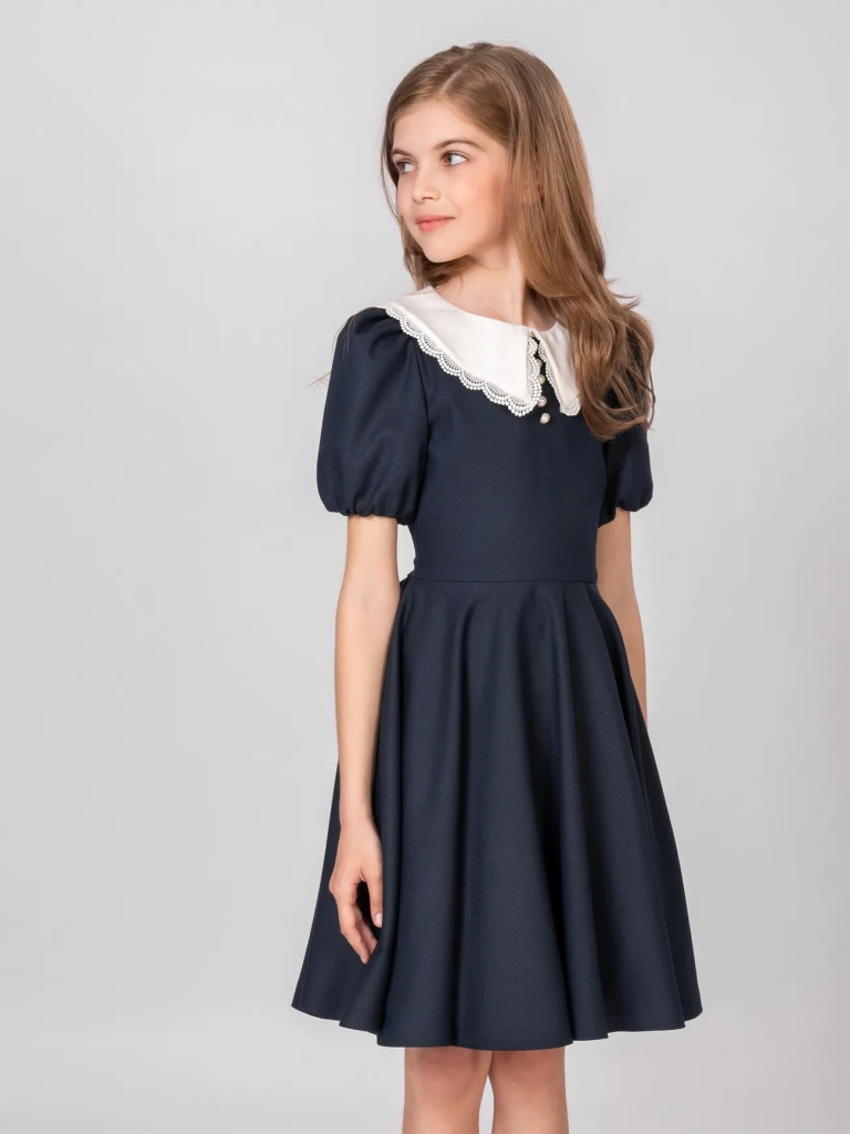 Платье со съемным воротником – одна из самых элегантных школьных моделей. Само по себе платье достаточно сдержанное и лаконичное, и утонченный, нежный съемный воротник с кружевной отделкой становится изюминкой образа. Платье отлично подойдет как для торжественной линейки, так и для повседневных школьных занятий. Для создания более нарядного образа рекомендуем подъюбник (Арт. 7205111)