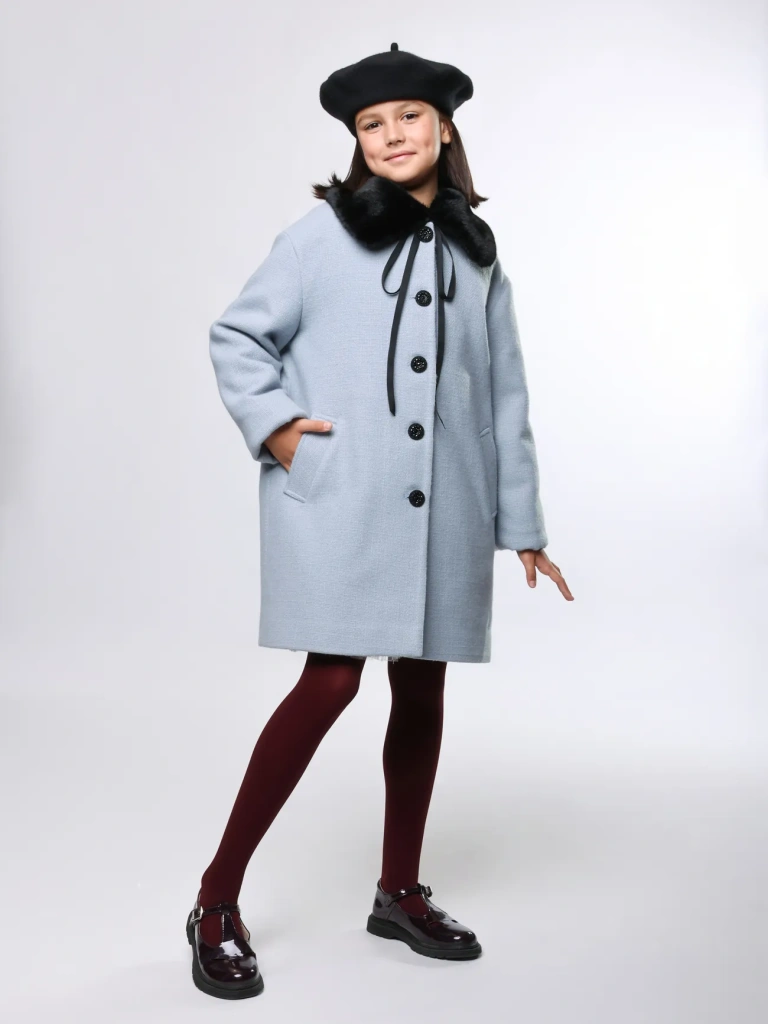 Пальто элегантное с натуральным утеплителем в цвете: Голубой