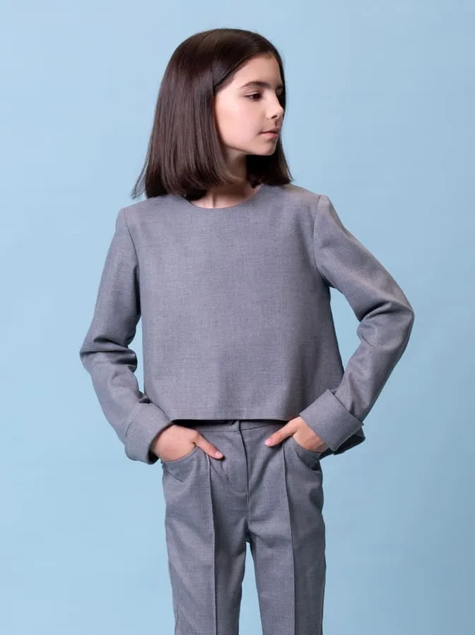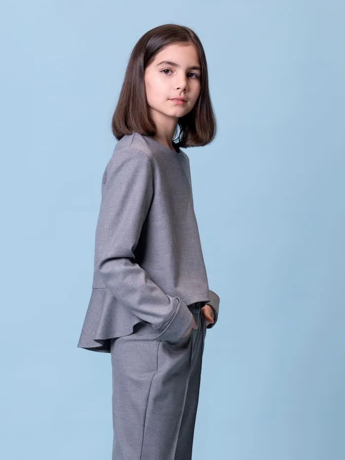Сочетайте двойную блузу с брюками-клеш (7235014П) для создания костюма.