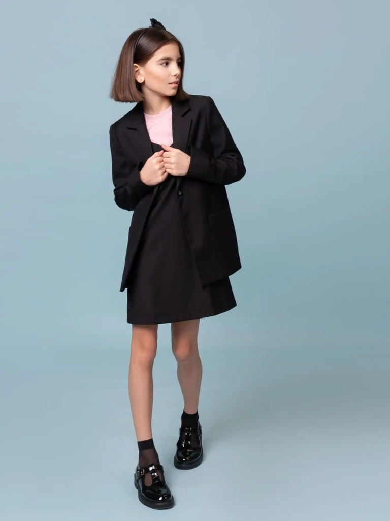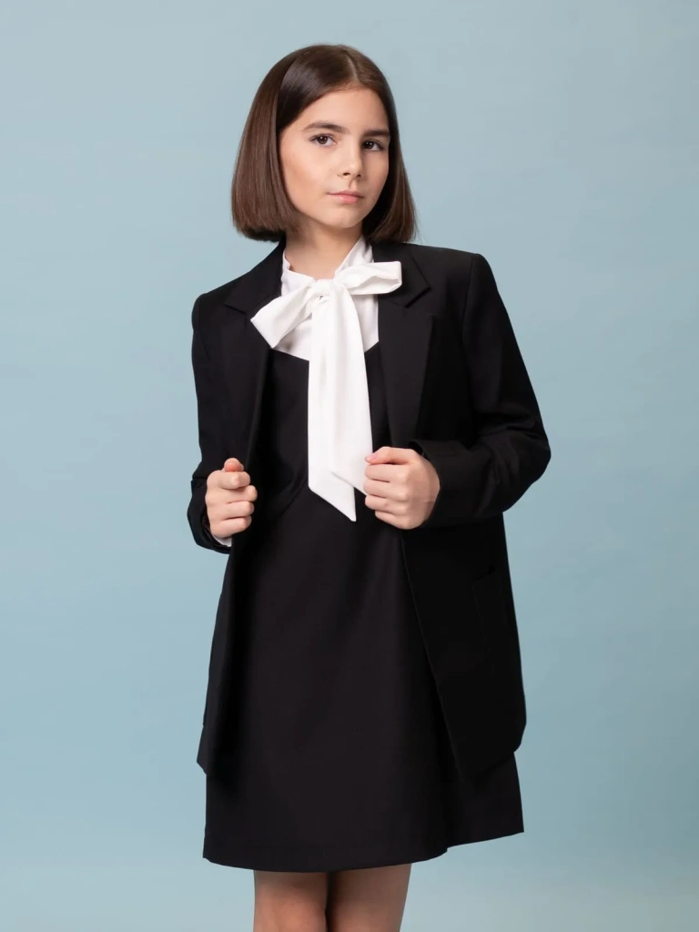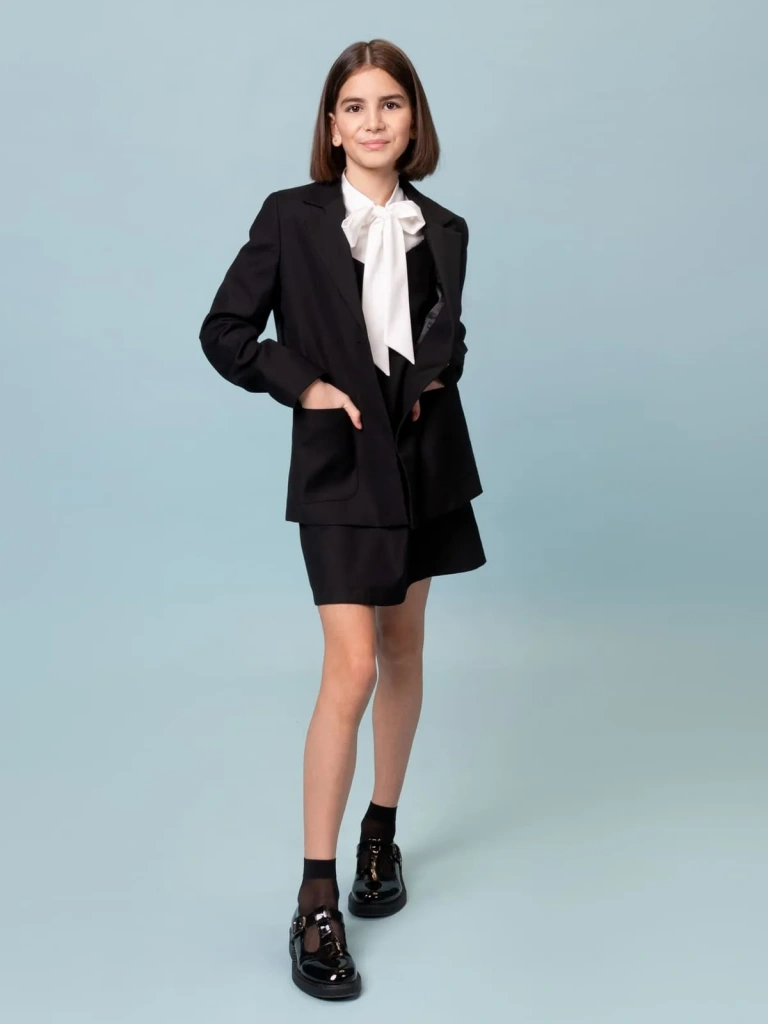 Жакет выполнен из премиальной костюмной ткани, сохраняющей отличный внешний вид даже при ежедневной носке.