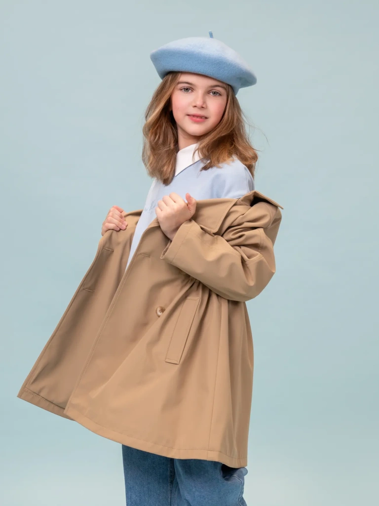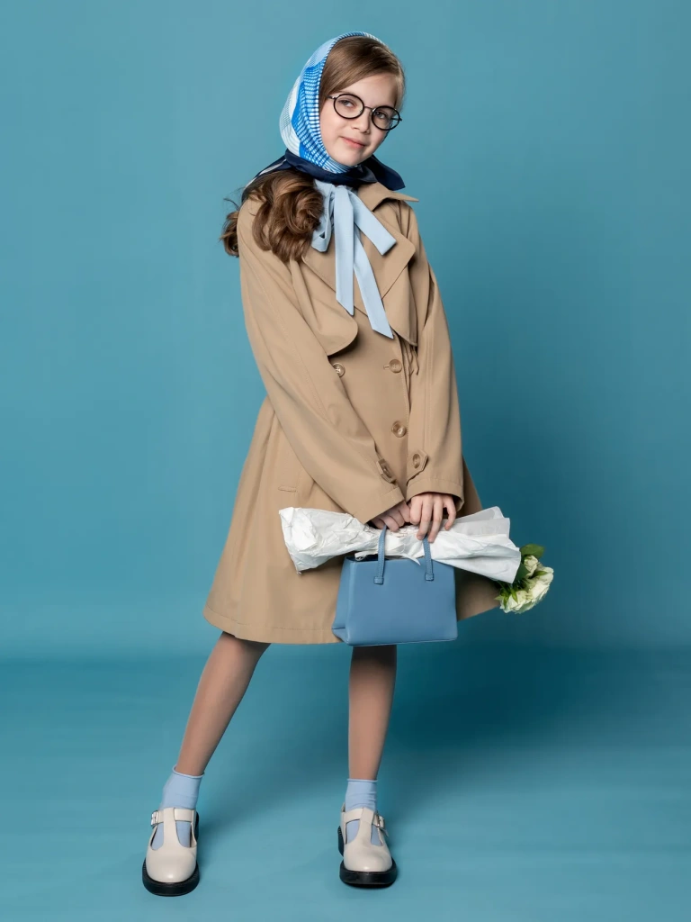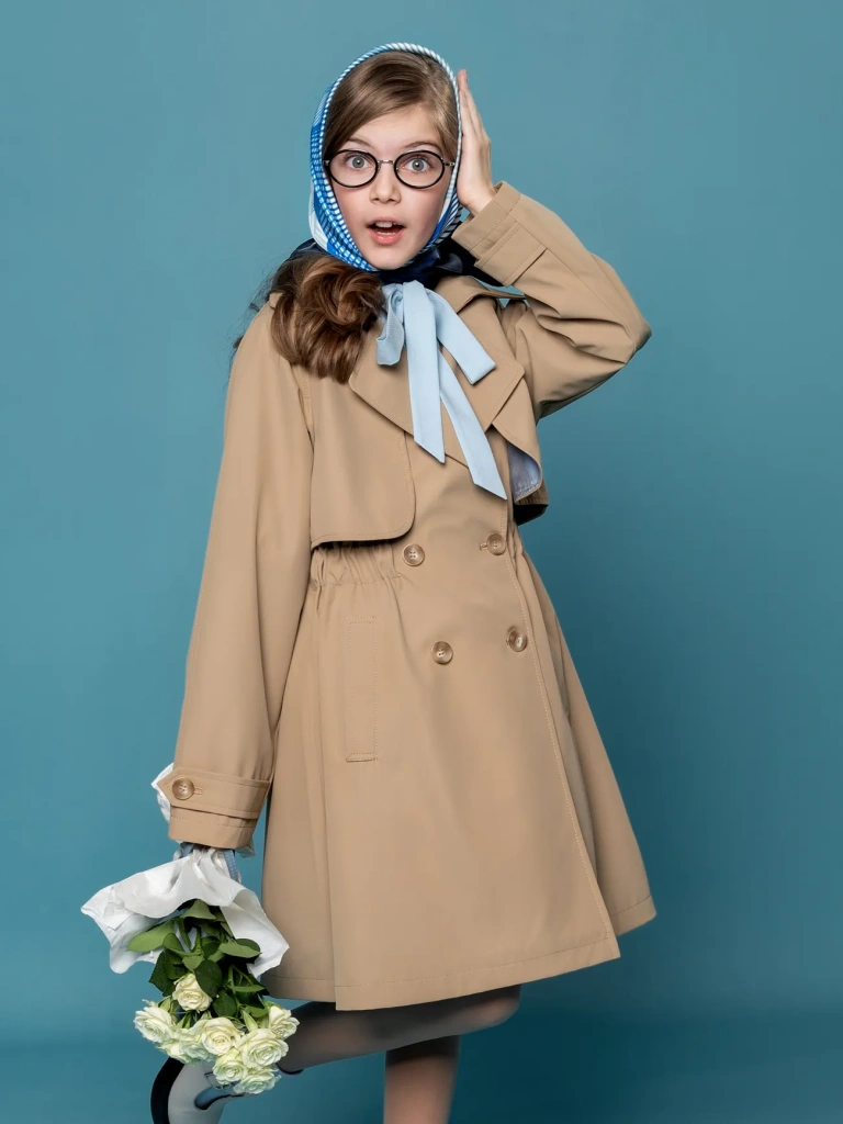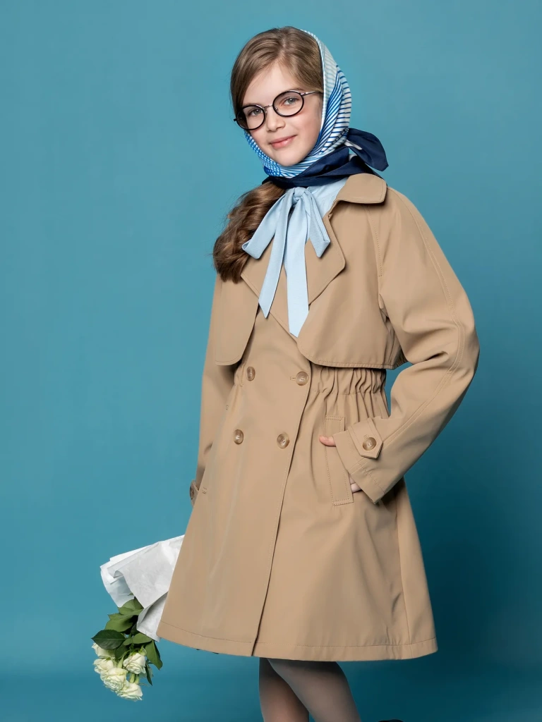 Тренч – не просто предмет гардероба, это символ элегантности и безупречного вкуса. Нотку кокетства в образ добавит широкий подол. Съемный пояс заменен на вшитую по талии резинку, которая обеспечивает «кукольную» посадку и избавляет ребенка от необходимости завязывать и развязывать пояс. Комфорт, удобство и стиль «маленьких взрослых» – все соединилось в этом тренче.