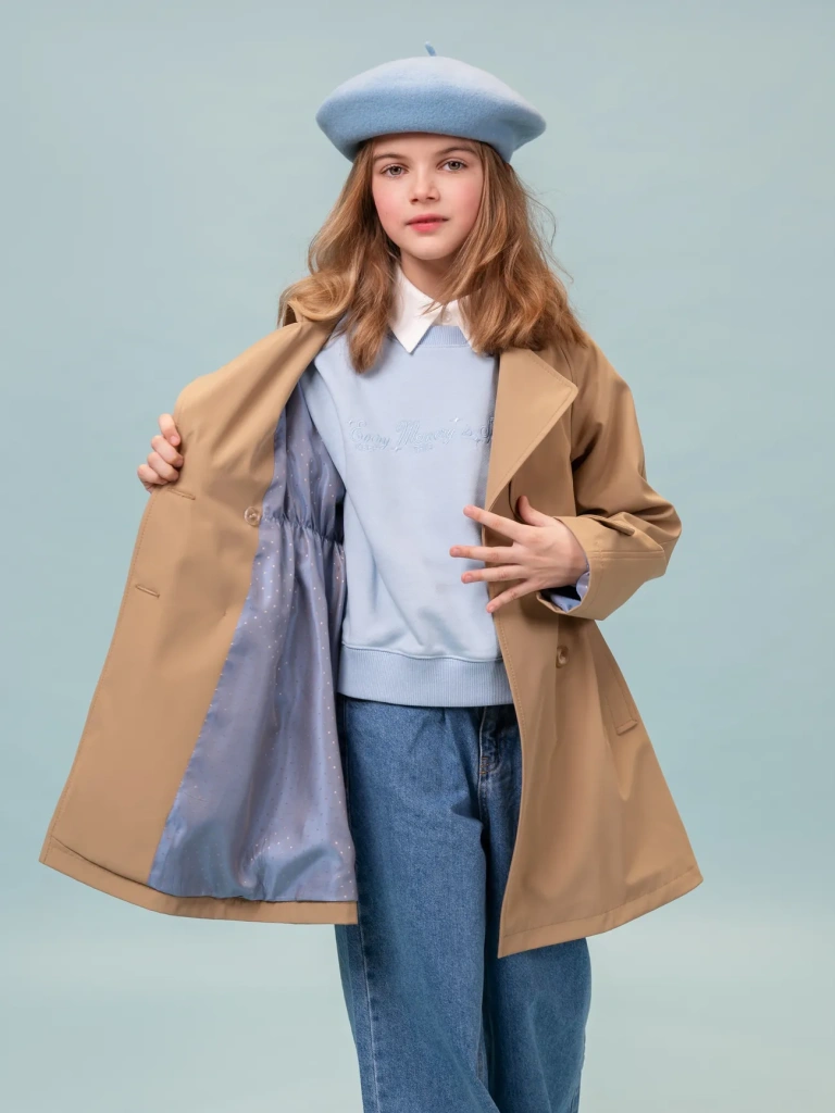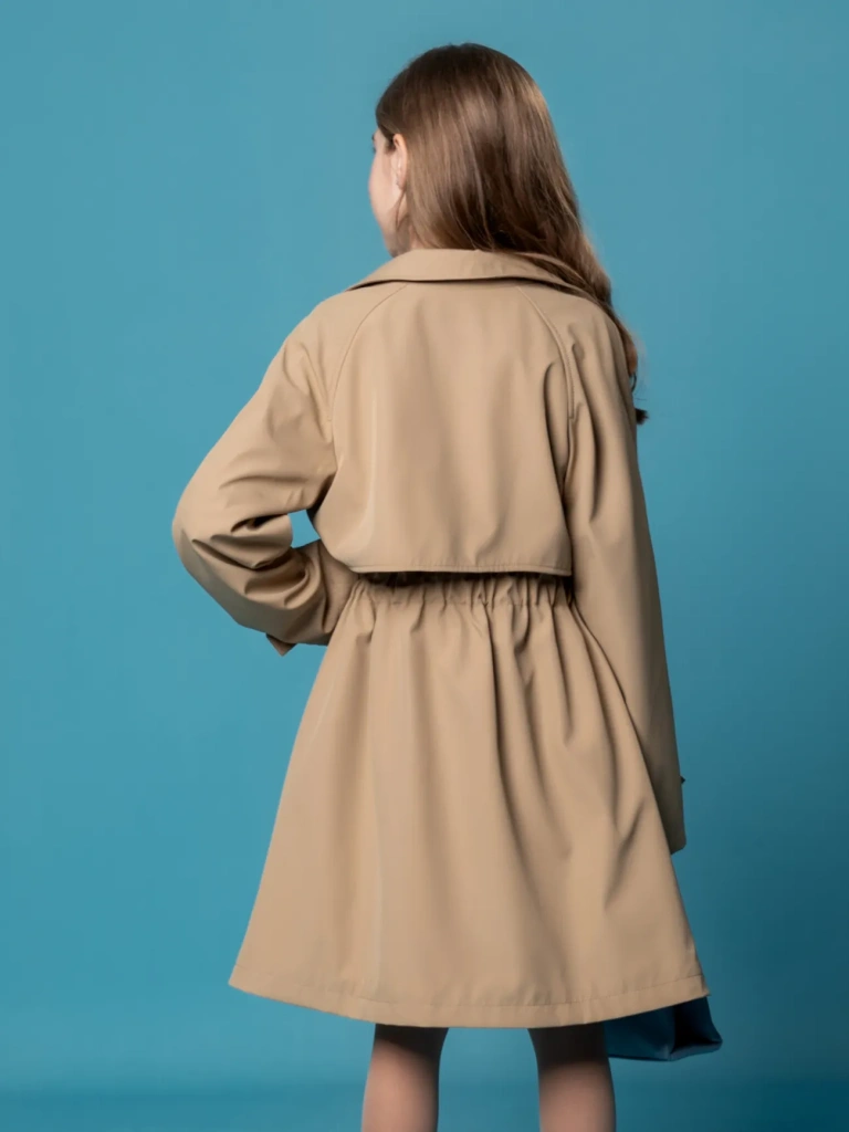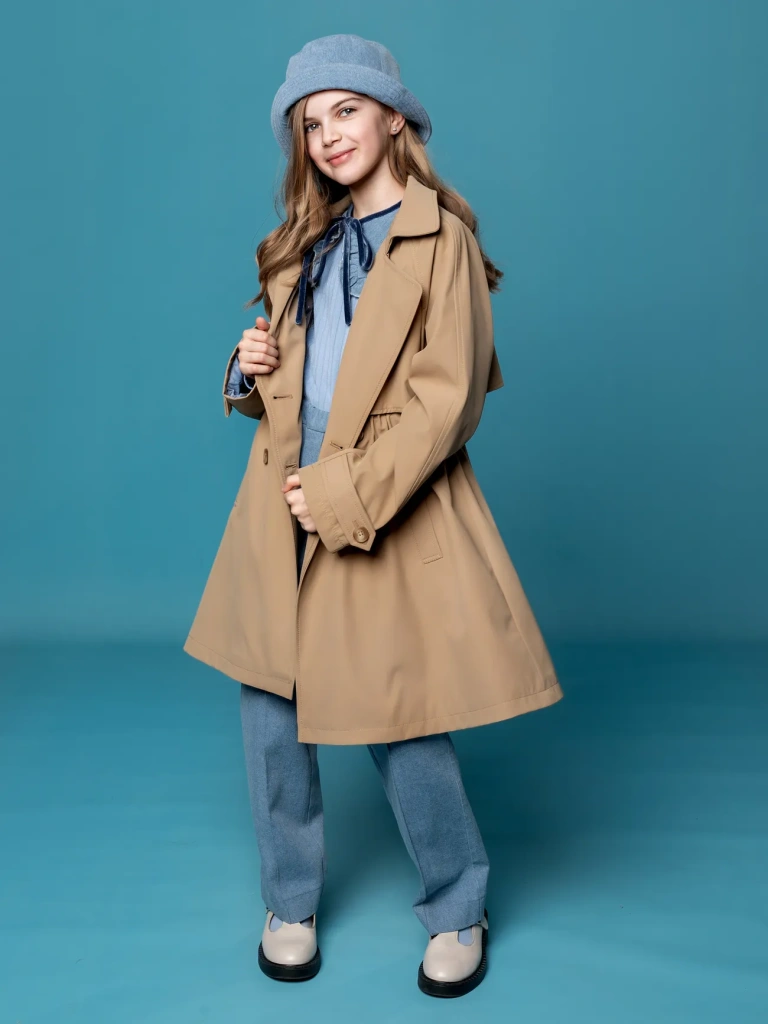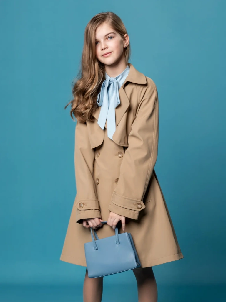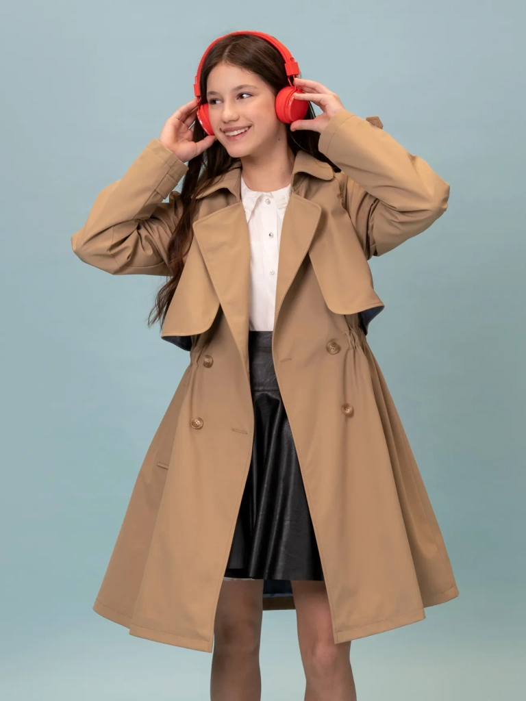 Тренч – не просто предмет гардероба, это символ элегантности и безупречного вкуса. Нотку кокетства в образ добавит широкий подол. Съемный пояс заменен на вшитую по талии резинку, которая обеспечивает «кукольную» посадку и избавляет ребенка от необходимости завязывать и развязывать пояс. Комфорт, удобство и стиль «маленьких взрослых» – все соединилось в этом тренче.