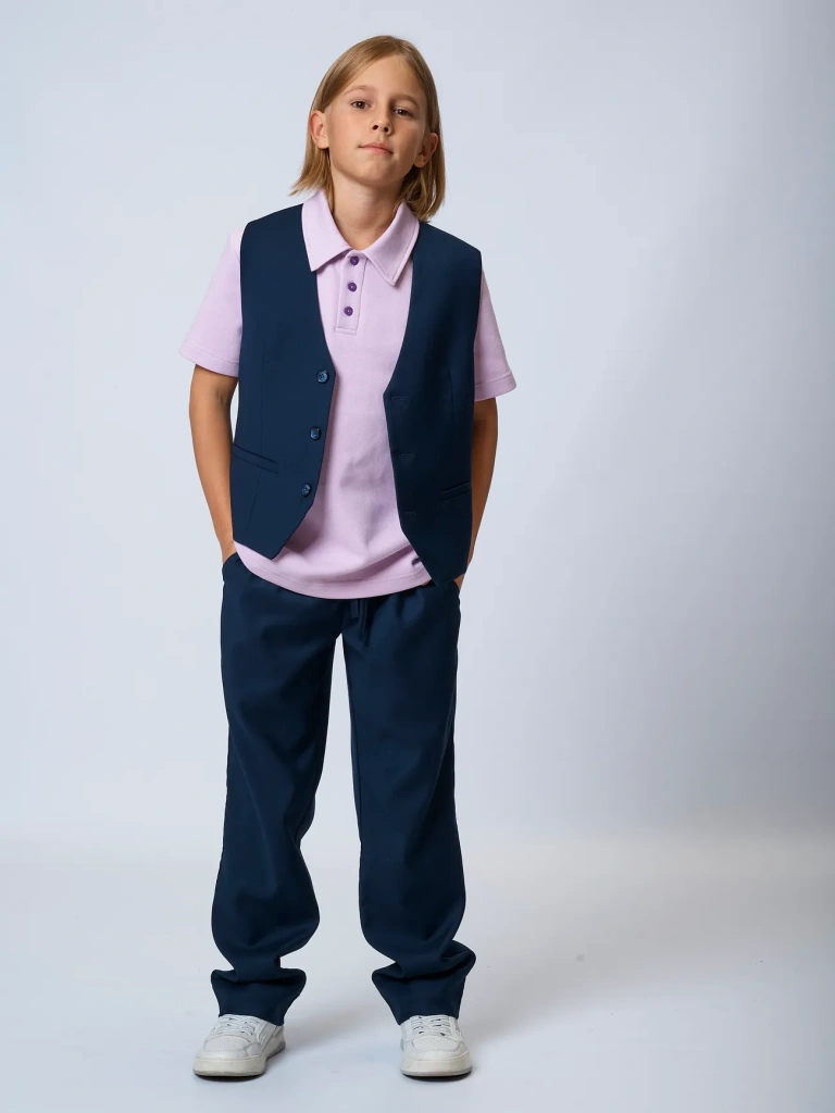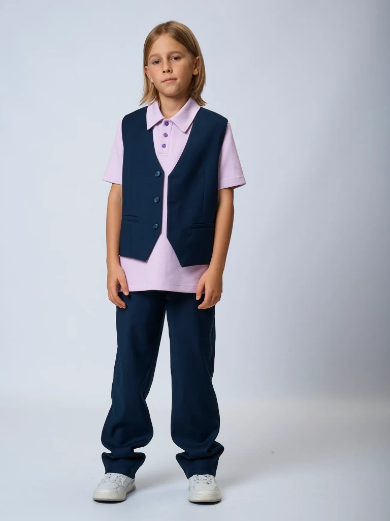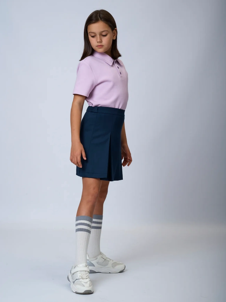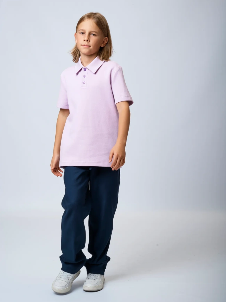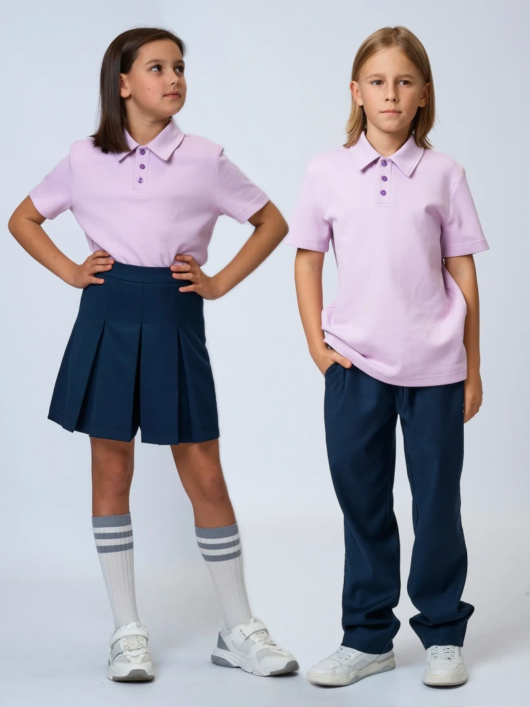 Базовое поло унисекс - практичный и комфортный выбор для школы и активного повседневного образа. Изготовлена из мягкого дышащего трикотажа, который приятен к телу и хорошо держит форму. Классический отложной воротник, планка с пуговицами и прямой крой делают эту модель универсальной - она одинаково хорошо подходит и девочкам, и мальчикам. Отлично сочетается с брюками, юбками, пиджаками.