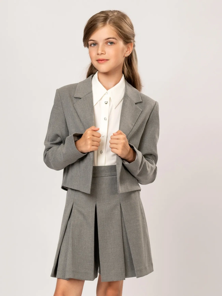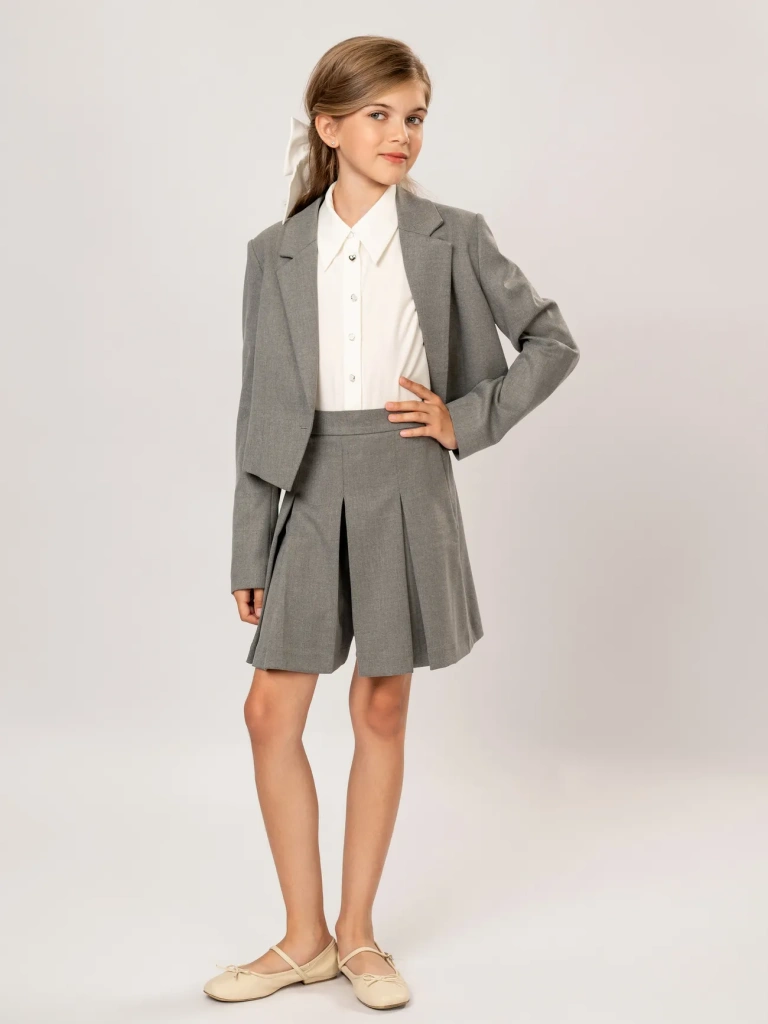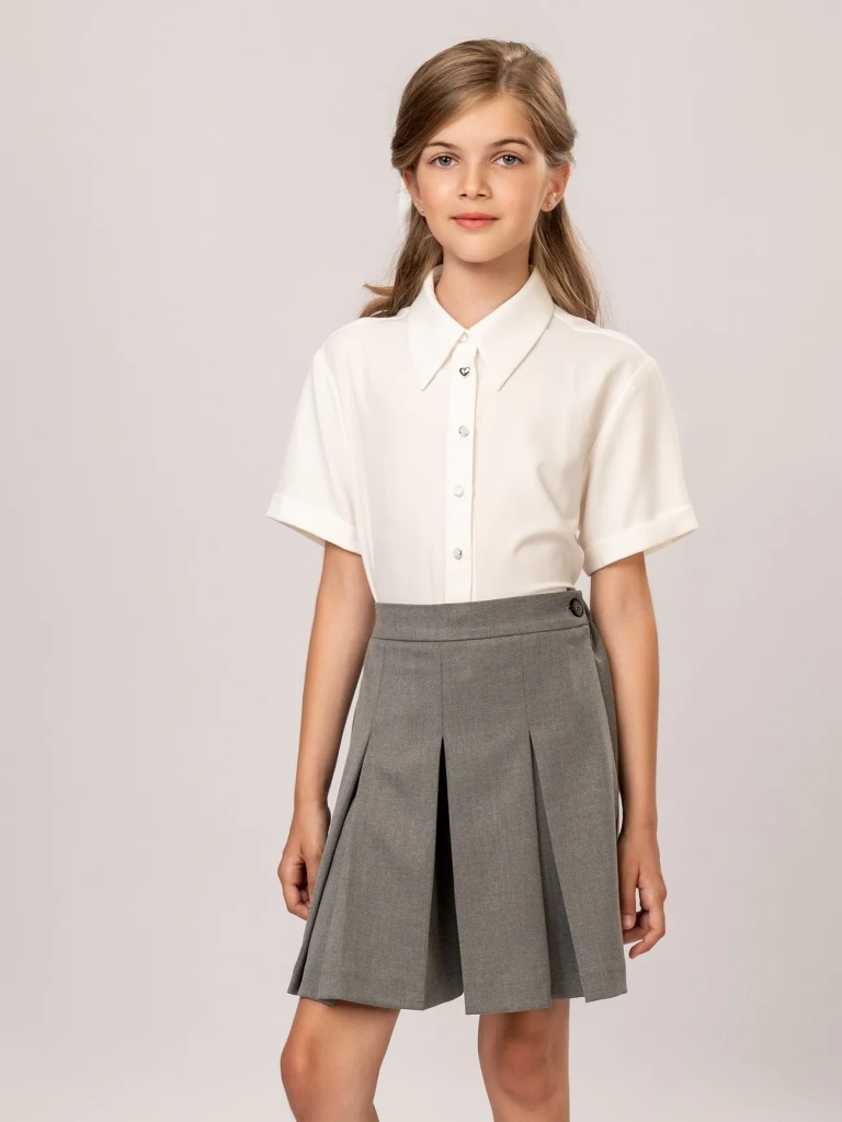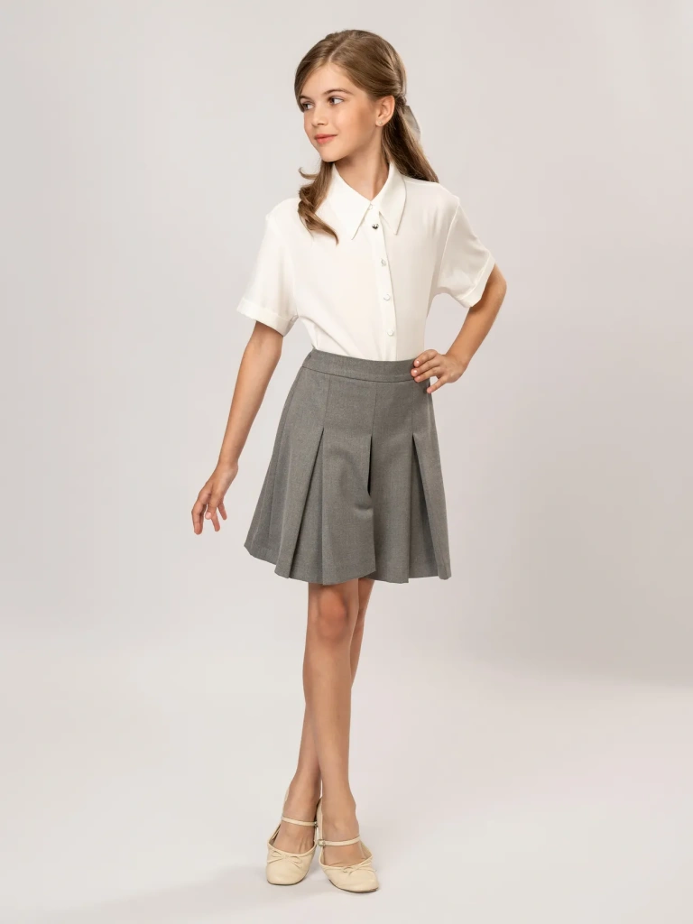 Юбка-шорты в складку – стильная и практичная модель для школьного и повседневного гардероба. Юбка-шорты отличается интересным кроем: спереди это юбочка со встречной складкой, сзади – шорты строгого силуэта. Модель имеет универсальную длину чуть выше колена и прекрасно сочетается с жилетами, жакетами и бомберами из школьной и повседневной коллекций Ole!twice. Пояс с регулирующейся резинкой обеспечивает идеальную посадку.