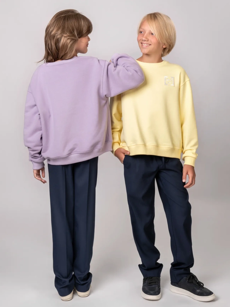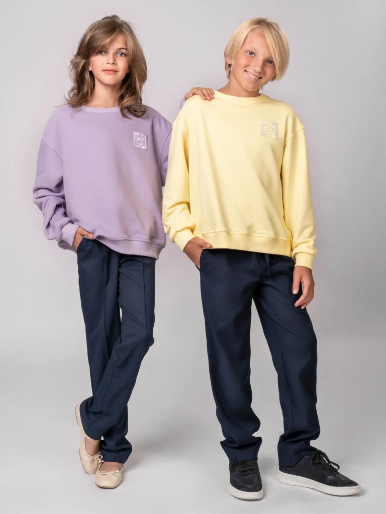 Свитшот Ole!twice – стильная и комфортная база для гардероба как мальчика, так и девочки. Материал модели - высококачественный футер-трехнитка. Небольшое содержание полиамида в составе ткани (20%) позволяет сохранять красивый и аккуратный внешний вид изделия: оно меньше мнется, не выстирывается, обладает более гладкой фактурой по сравнению с обычным футером. Универсальный фасон дает возможность создавать яркие молодежные образы с джинсами и брюками, а также многослойные аутфиты.