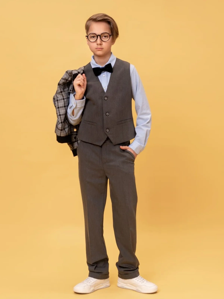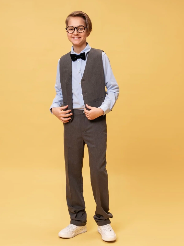 Прямые базовые брюки с заутюженными стрелками. Комфортные и стильные, брюки станут отличной школьной базой.