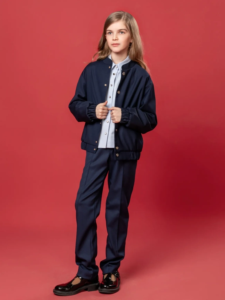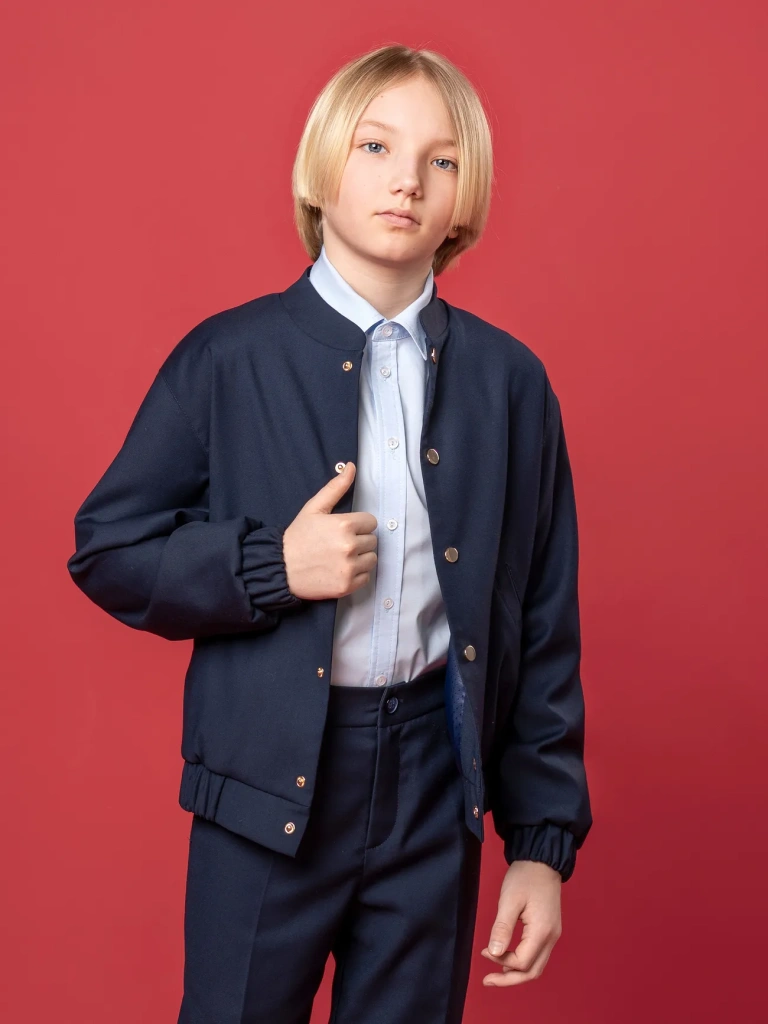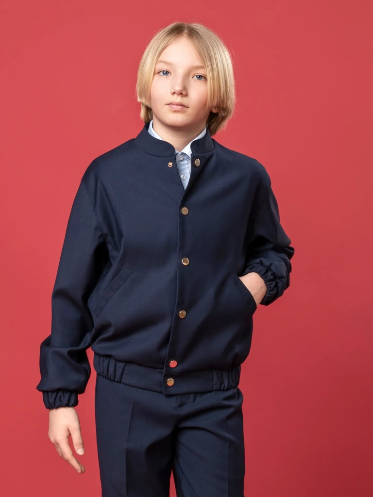 Бомбер из костюмной ткани на кнопках в цвете: Синий